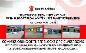 Save the Children International (SCI) has renovated and furnished three blocks of seven classrooms and three offices for Nursery and Primary schools in Numan Local Government area of Adamawa.